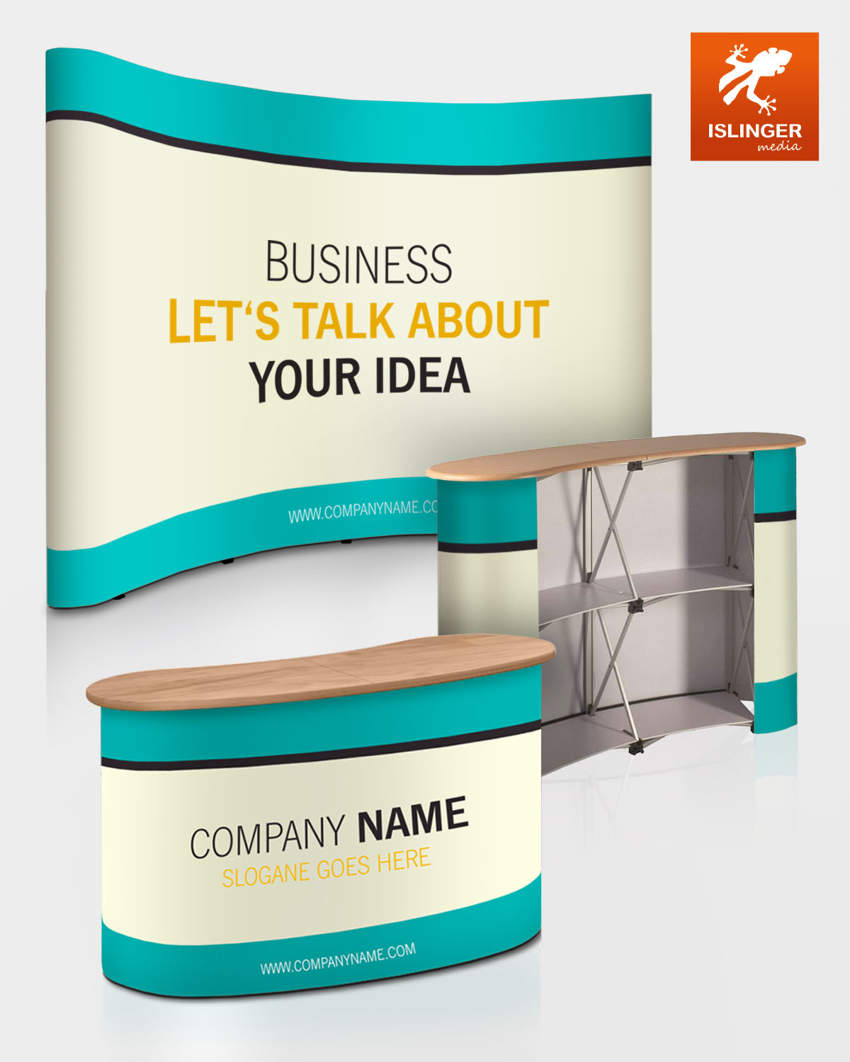 Mit ISLINGER media bieten wir Ihnen maßgeschneiderte Lösungen, um Ihre Marke auf jeder Messe oder Veranstaltung optimal zu präsentieren. Flexibel, hochwertig und nachhaltig – alles aus einer Hand!