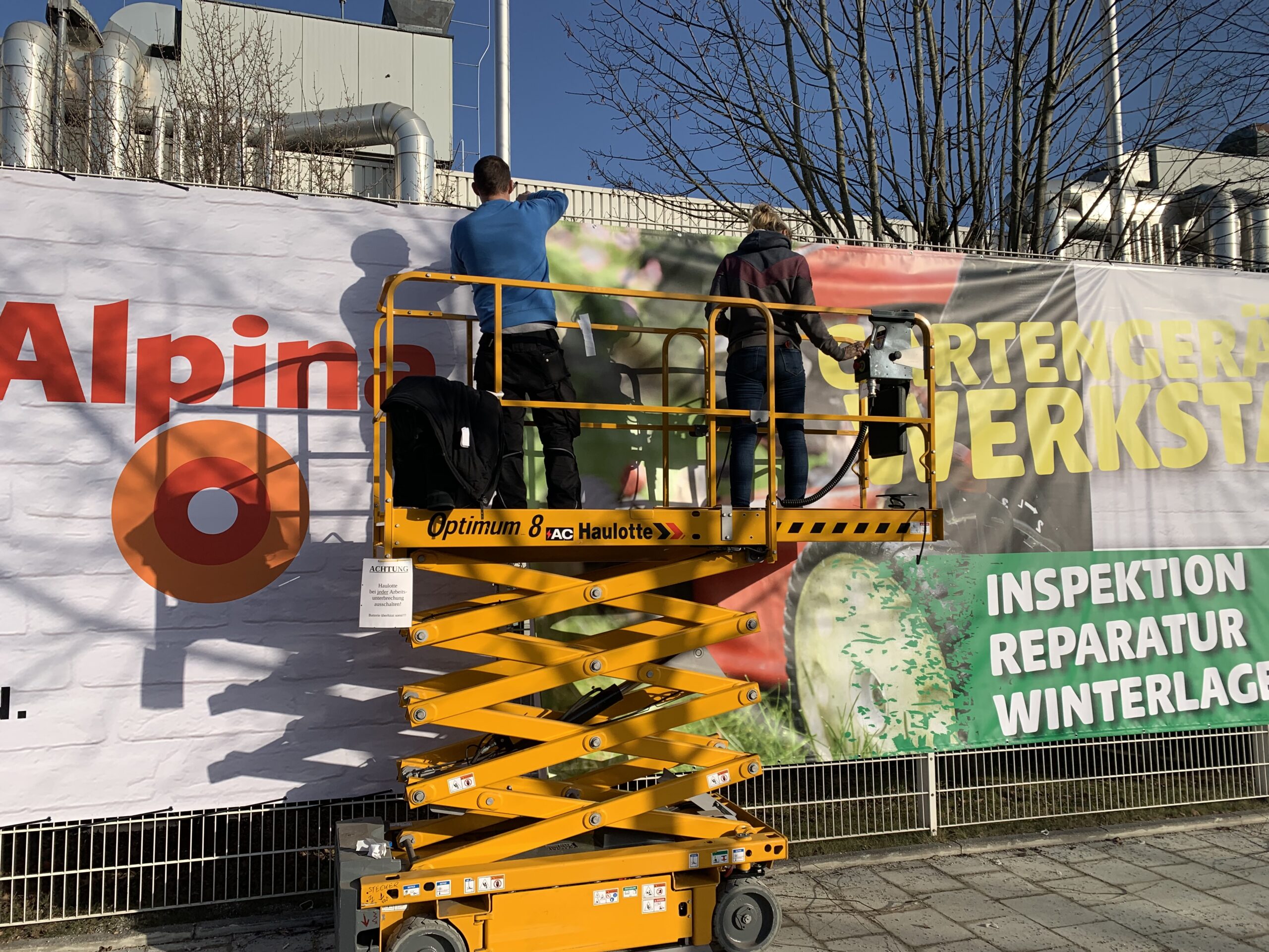 Egal, wo Sie Ihre Werbemittel benötigen – wir kommen zu Ihnen und montieren alles schnell, sicher und professionell an der gewünschten Stelle. Dabei stellen wir selbstverständlich alle notwendigen Hilfsmittel wie Arbeitsbühnen und Montagewerkzeuge zur Verfügung.